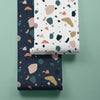 Modern luxe meets traditional terrazzo to create this wallpaper print. Soft tone specks of pale pink, teal and grey sit on a white background. We love this look in a bedroom or home office where you can really appreciate the texture this terrazzo wallpaper can add to a space!