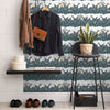 Our illustrated deep wave wallpaper is inspired by Japanese design. Muted green waves flow in front of a sea grey sky to create this nautical piece. Complemented beautifully by a neutral palette, this great wave wallpaper can be hung as a feature in a bathroom or living room.