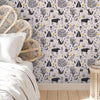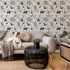 Turn your space into a dreamy woodland escape with this illustrated, forest print wallpaper. In a muted palette of slate grey on white with bursts of mustard, this wallpaper can be used to decorate a whole room or a feature wall. We recommend for a bedroom or living room.