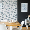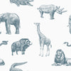 The ocean meets the desert in our safari animal wallpaper paper printed in ocean blue. Featuring grand drawings of snakes, lions and giraffes, this animal print wallpaper is a fantastic feature for a large wall area. We recommend our Mufasa wallpaper for a dining room or bedroom.